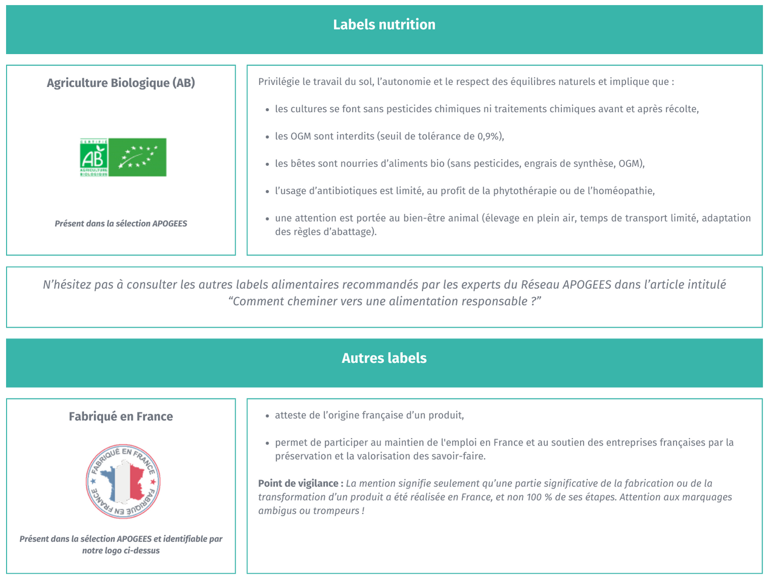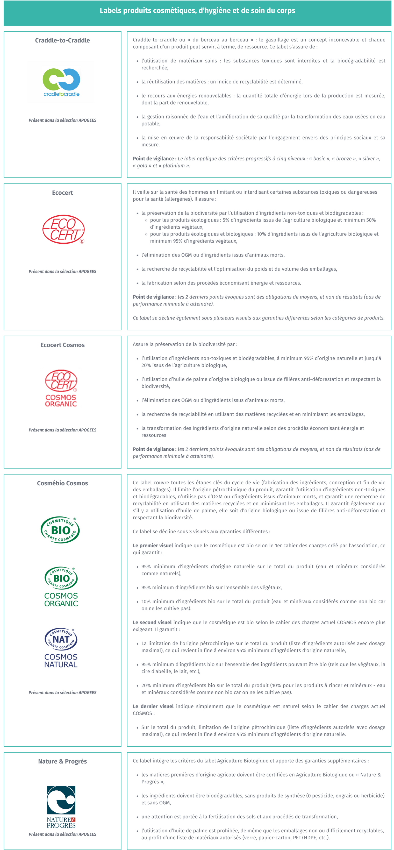 Les experts du Réseau APOGÉES vous recommandent les labels suivants. Certains sont disponibles dans la sélection de produits à votre disposition.