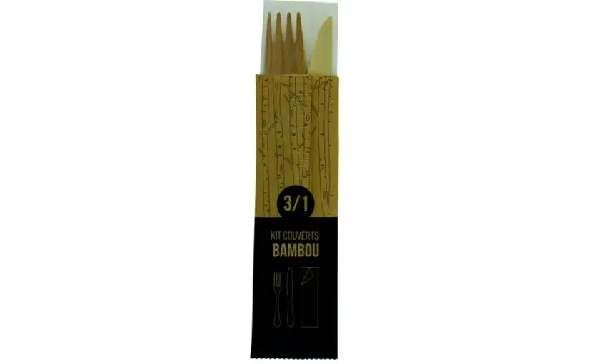Kit couvert bambou 3 en 1 (couteau + fourchette + serviette)