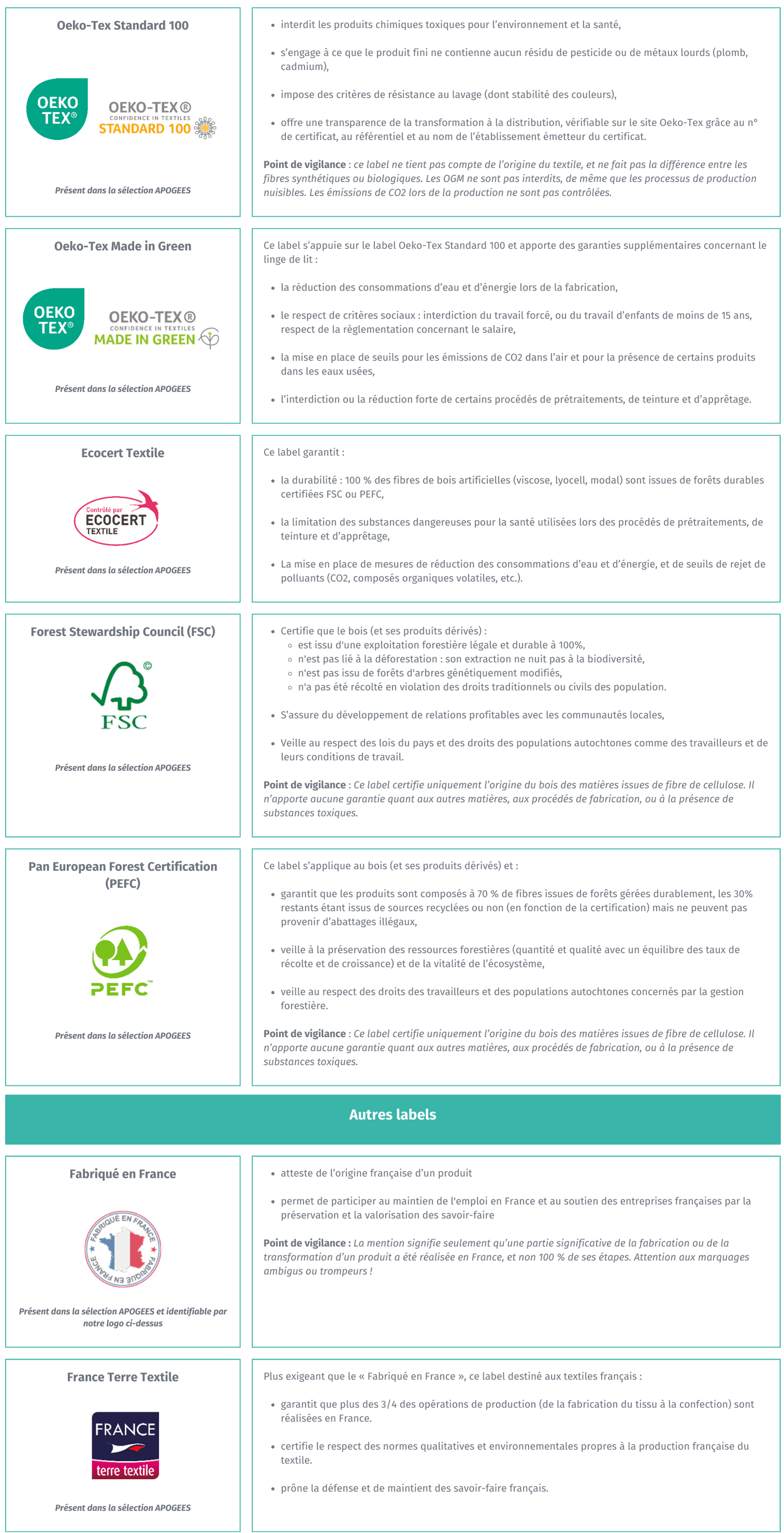 Les experts du Réseau APOGÉES vous recommandent les labels suivants. Certains sont disponibles dans la sélection de produits à votre disposition.